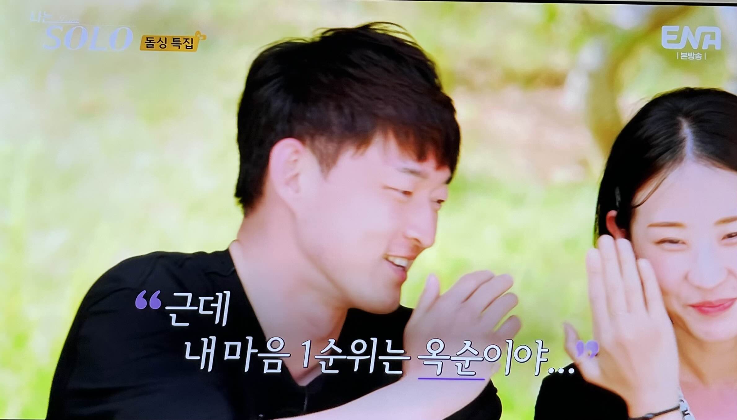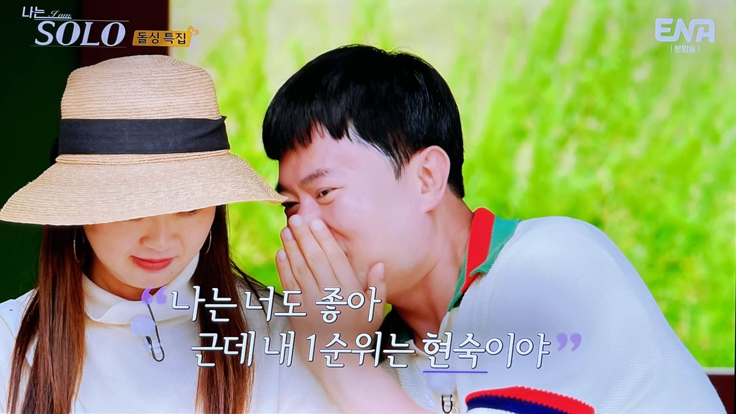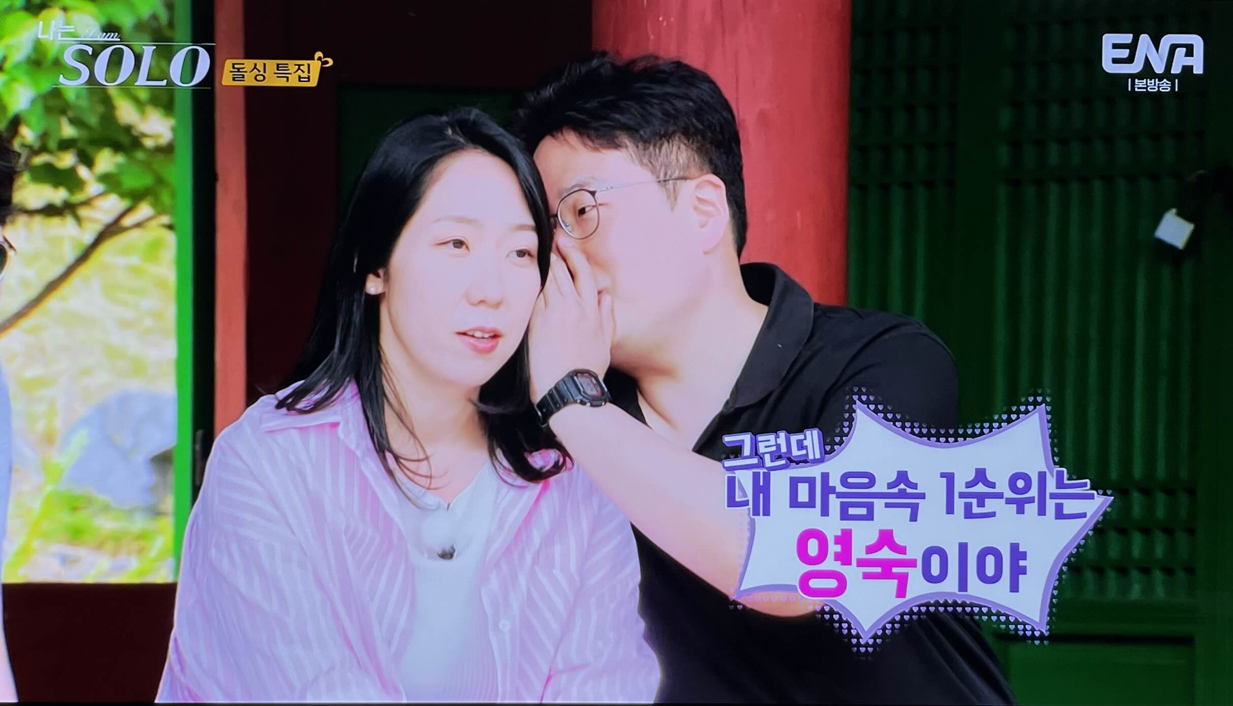 영수님의 2순위는 순자님이었어요. 그리고 귓속말로 1순위는 영숙이라고 알려주죠.
