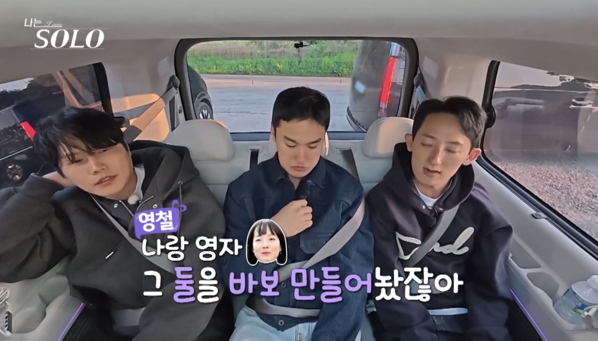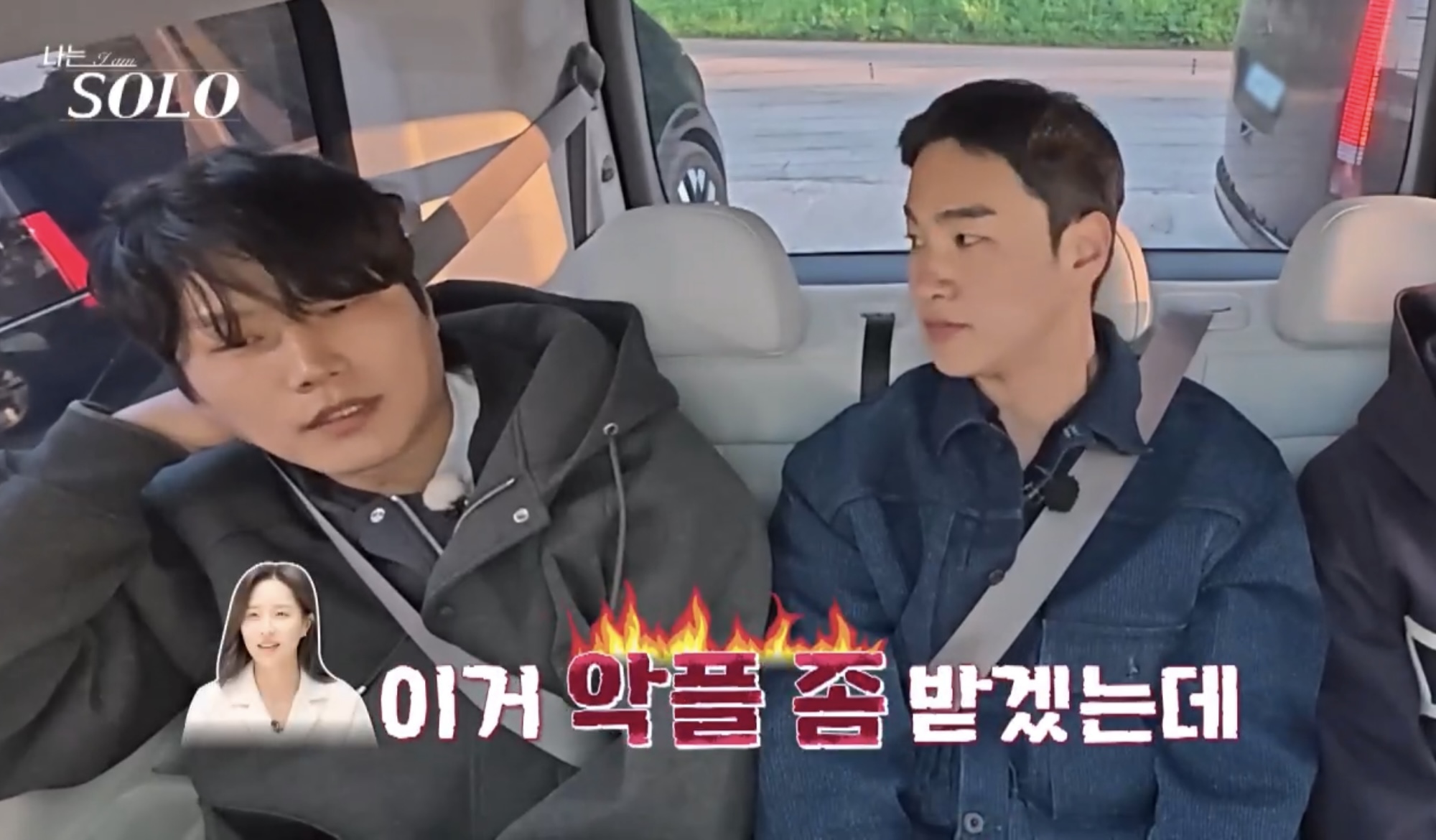 남자들과 이동하는 차 안에서 정숙 악플 받겠다며 이야기하는 영철.