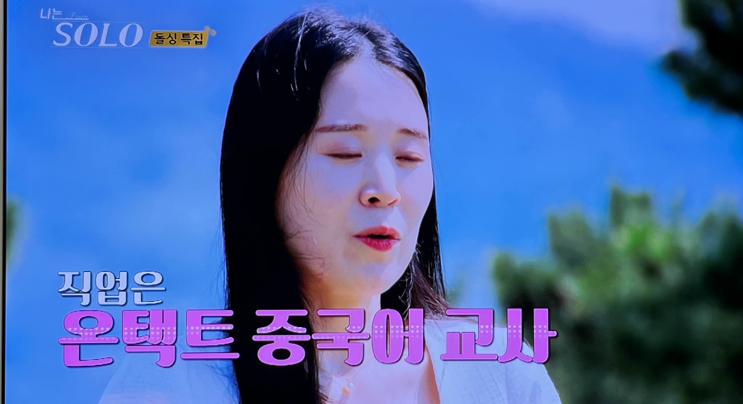 현숙님은 등장과 동시에 유창한 중국어 실력을 뽐내셨어요. 솔로 나라 오기 전까지는 중국 대사관 산하 기관에서 근무하셨다고 해요. 현재는 온택트 중국어 교사라고 합니다.