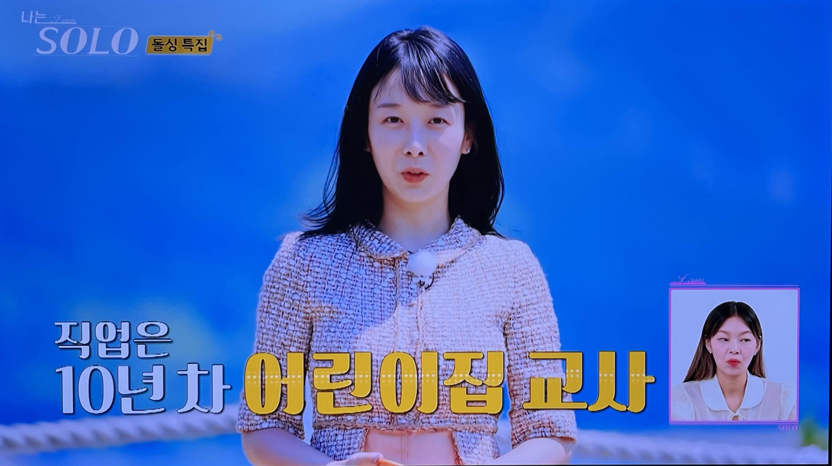 영숙님은 어머니가 하시는 어린이집을 같이 운영하고 있다고 해요. 영숙님 보이는 이미지와는 반전인 직업이었어요. 솔로나라에 출연한 계기는 늦기 전에 출산을 하고 싶어서라고 해요.