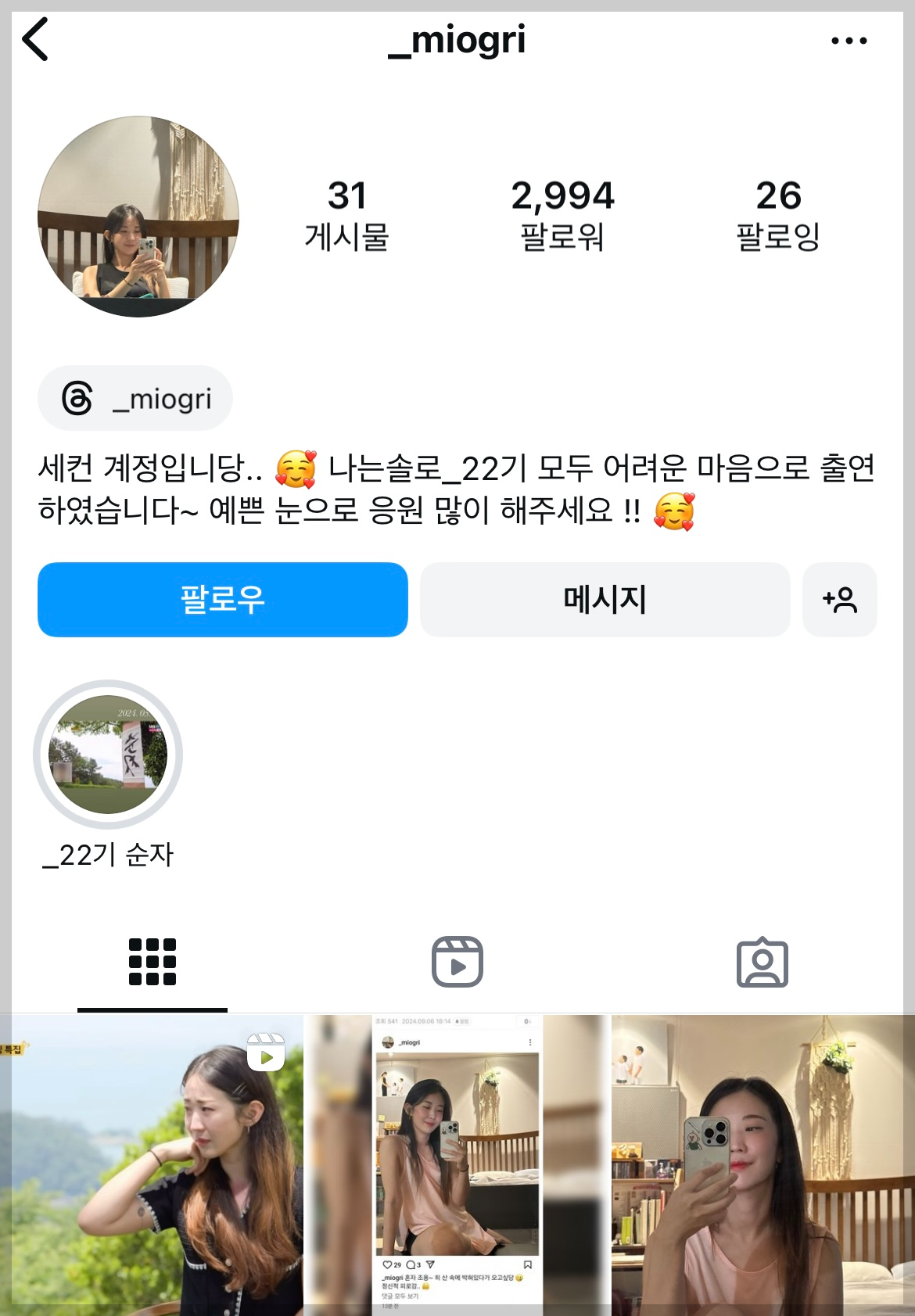 그래서 이번 글은 나는솔로 22기 출연진들 인스타를 알려드릴게요.