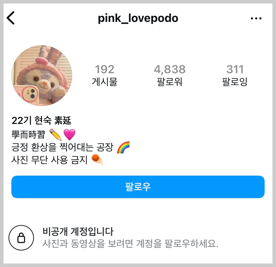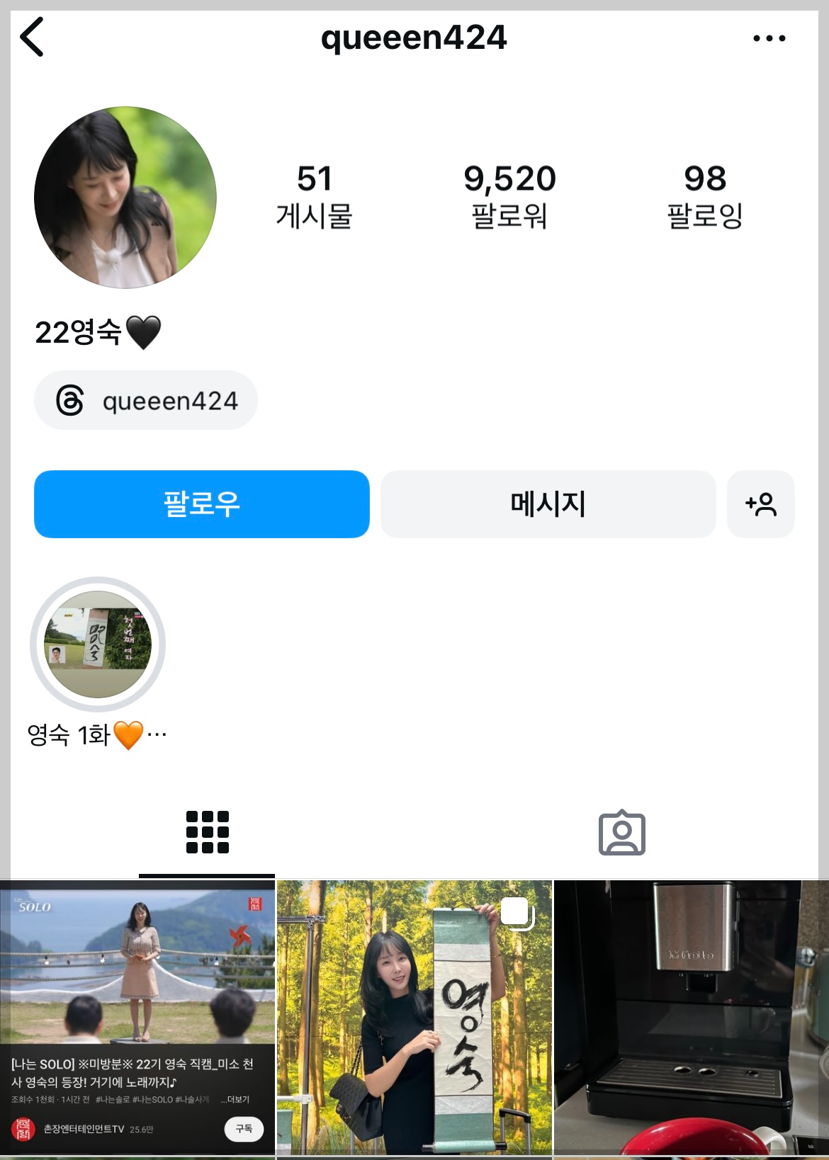 현재 22기 현숙, 영식님이 인스타 비공개 계정이네요.