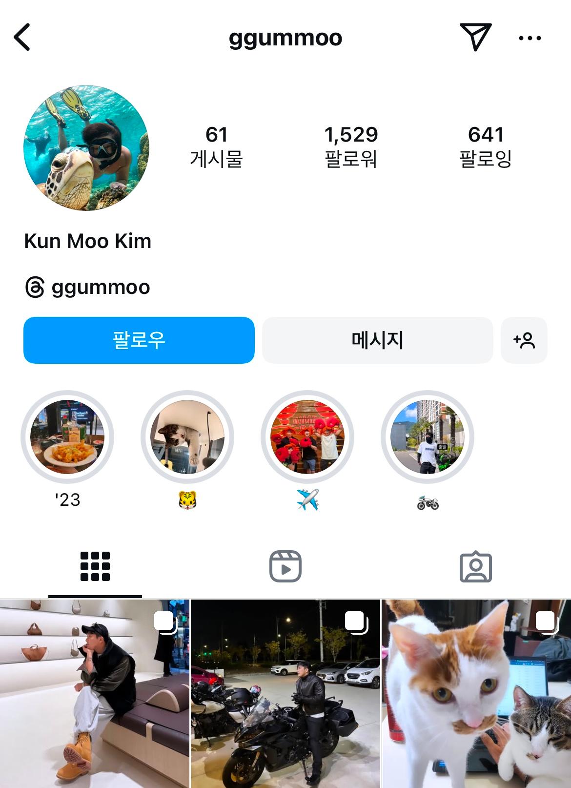 영식님의 인스타를 보니 고양이를 키우시고 오토바이를 좋아하시는 듯 합니다.