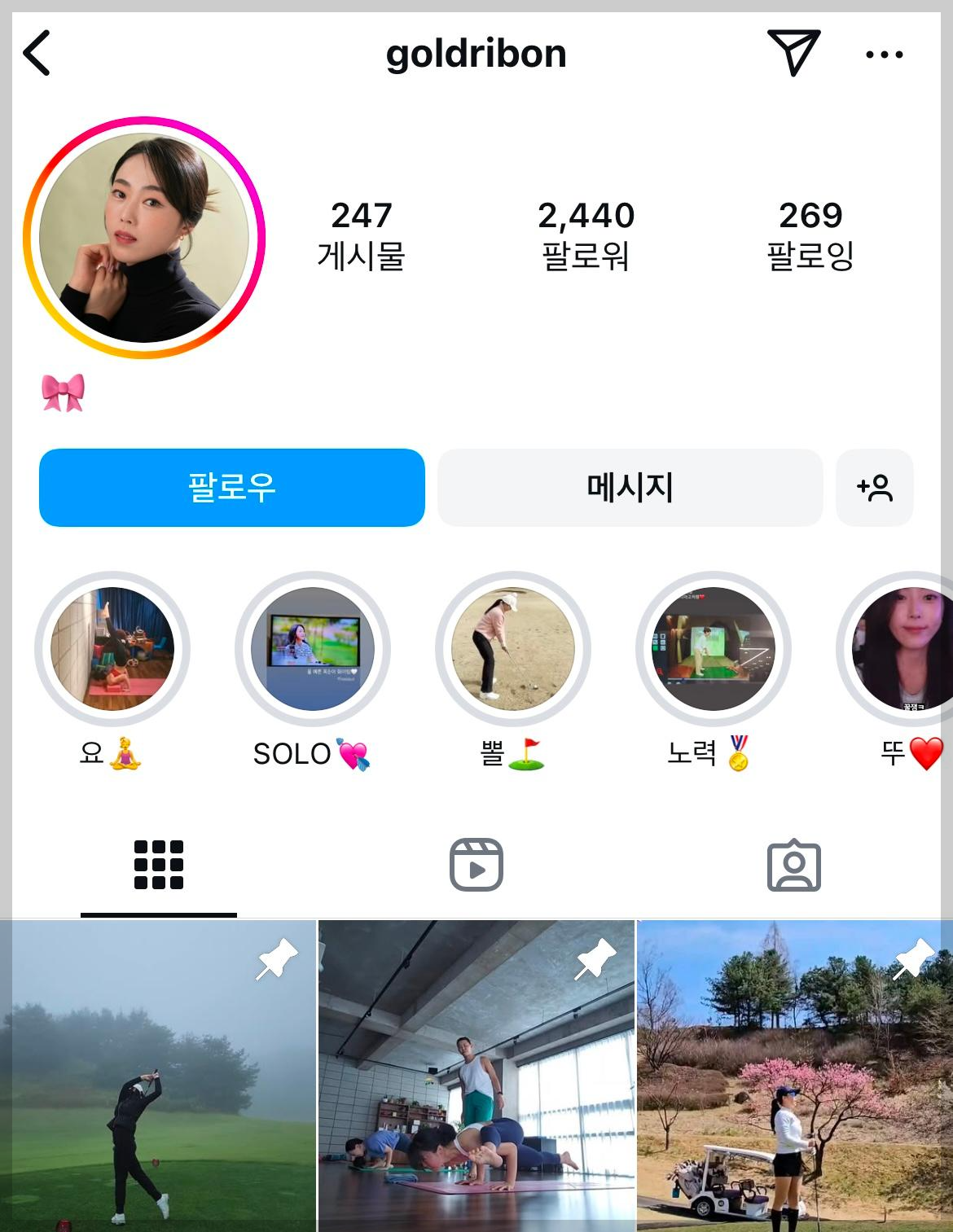 23기 영숙님의 인스타를 보니까 운동, 골프, 여행이 취미인 것을 알 수 있었어요.