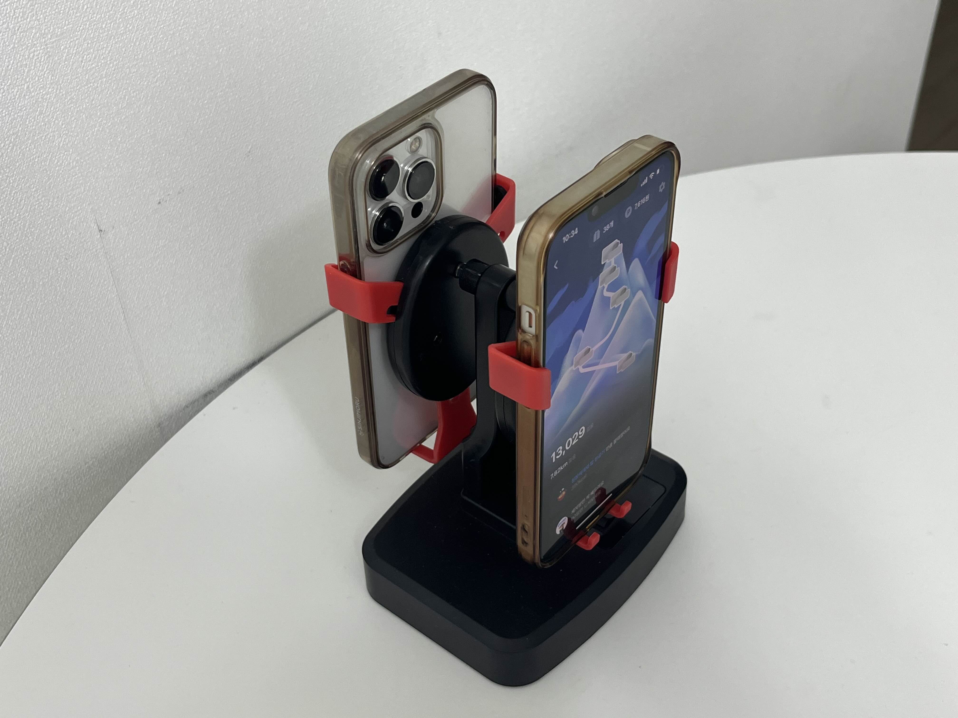 제 기계는 핸드폰 두 개를 동시에 올릴 수 있는 기계예요.