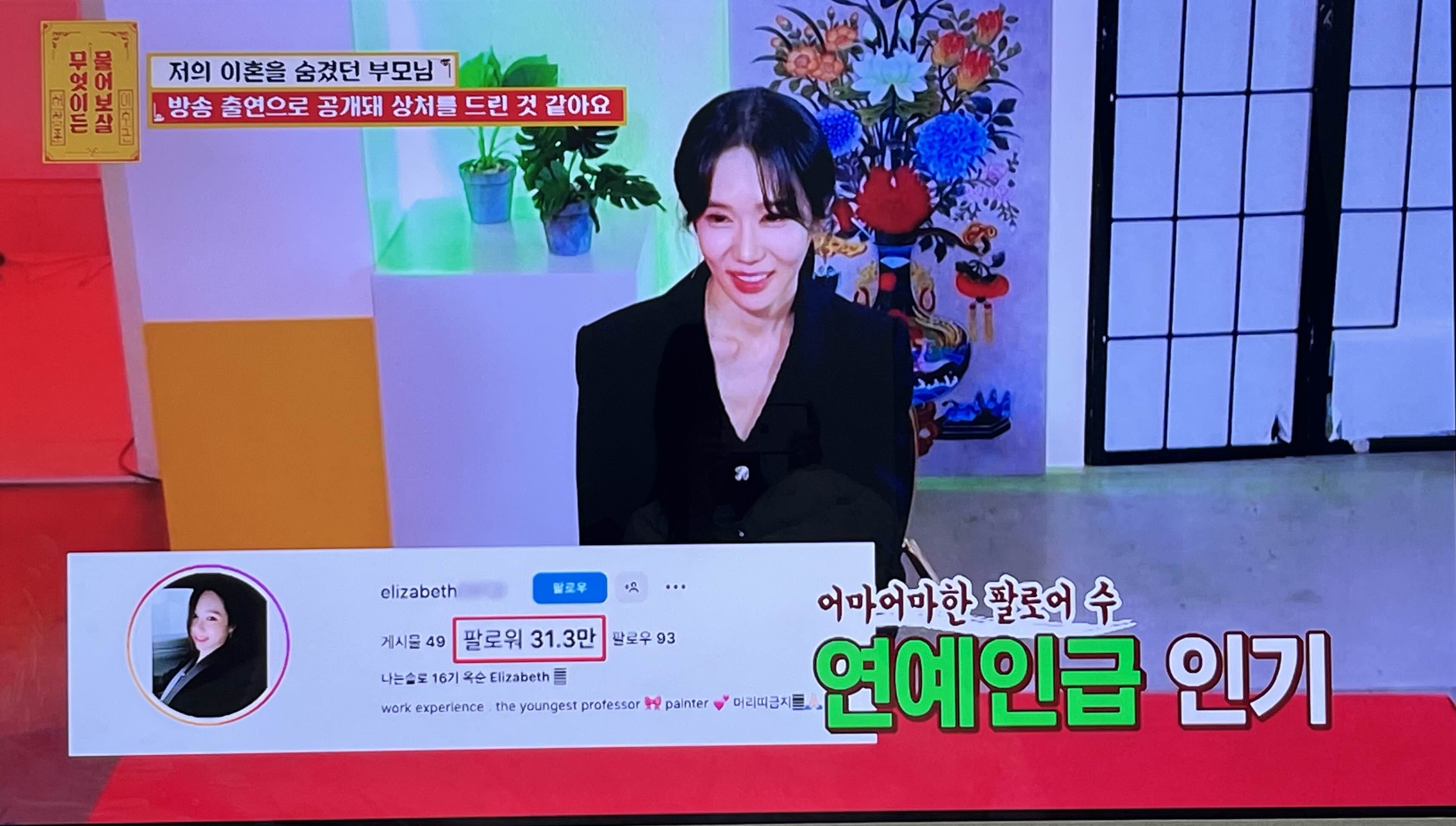 옥순님 직업은 서양화가라고 합니다. 이 부분은 나는 솔로에도 나왔죠.