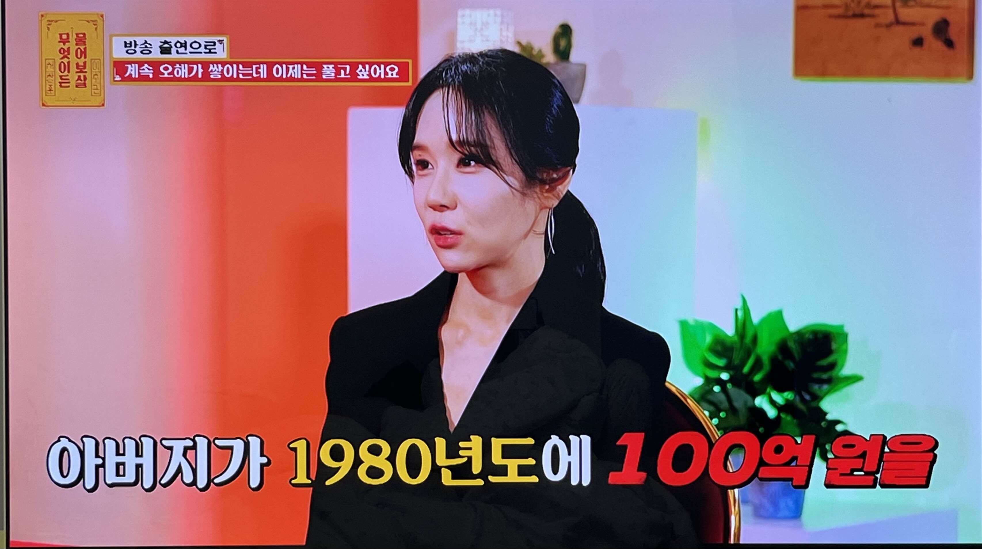 아버님의 사업 성공으로 1980년대에 100억을 버셨다고 합니다.