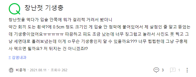 창난젓 먹다가 기생충 나왔을 경우 대처 방법