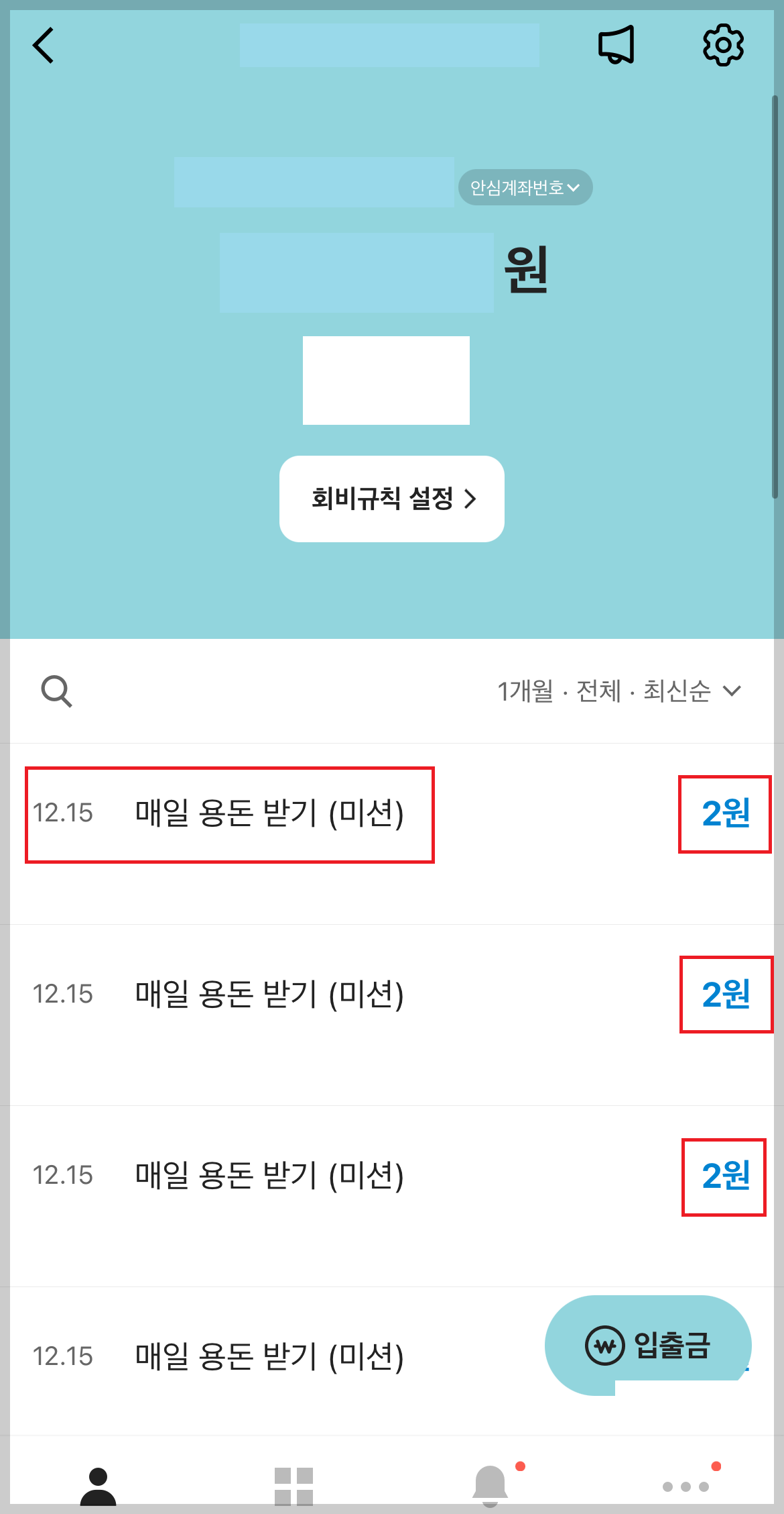 (4) 데일리 용돈은 랜덤으로 4~6원정도 나옵니다.