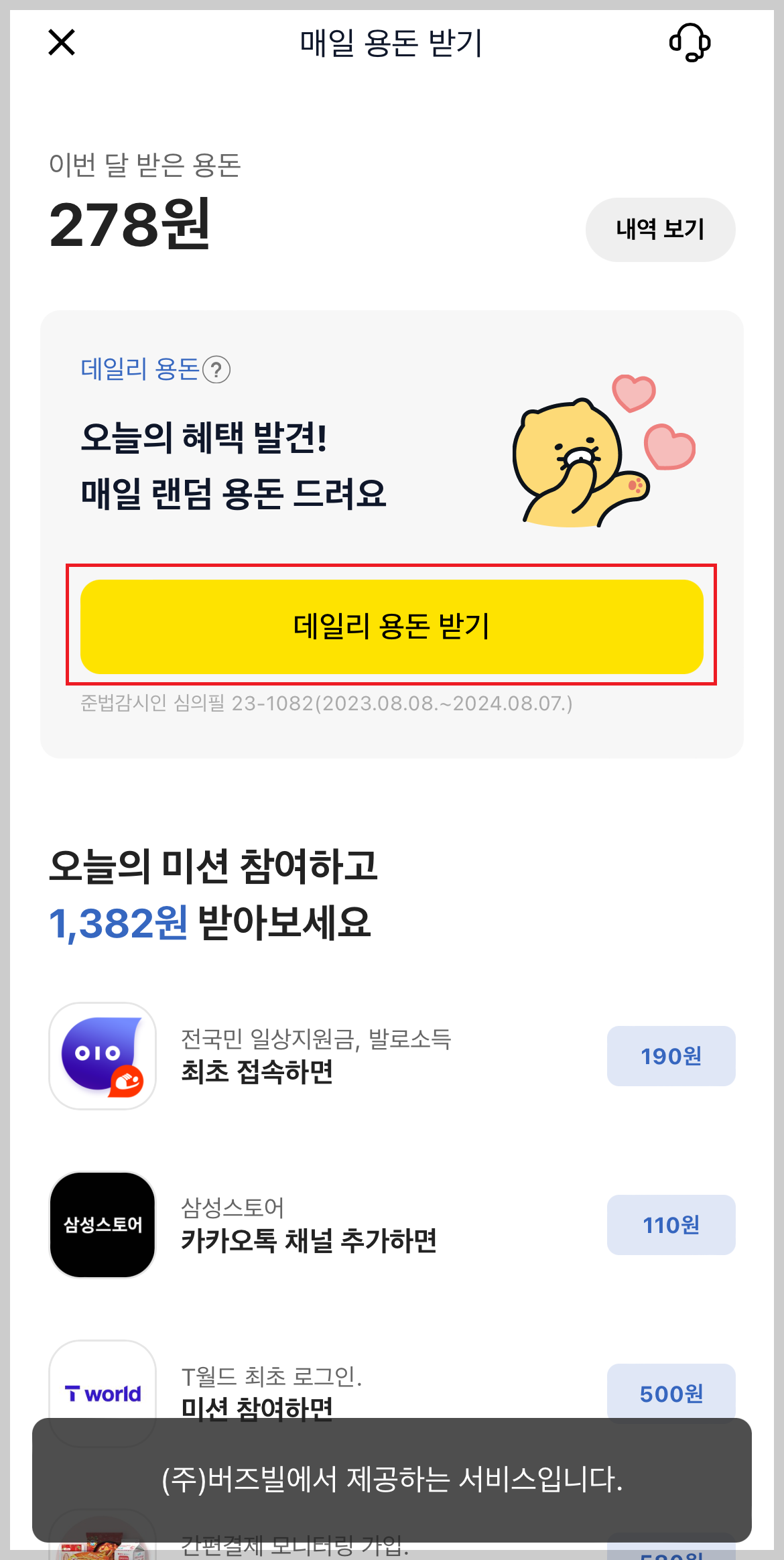 (3) 데일리 용돈 받기를 눌러줍니다.