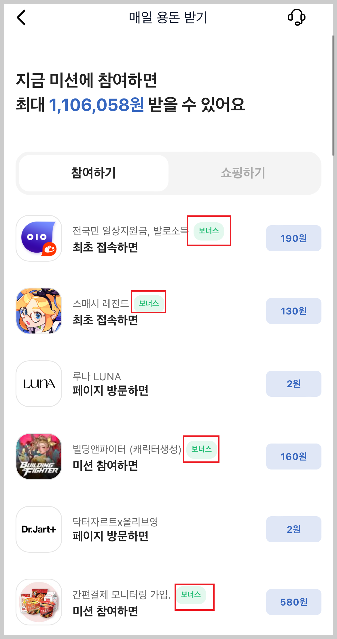 (6) 보너스 미션을 참여하면 보너스 용돈을 추가로 지급해 줍니다.