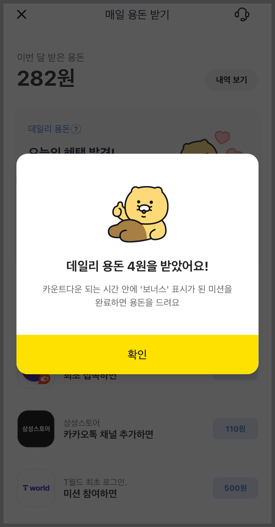 2. 카카오뱅크 매일 용돈 받기 하루 수익