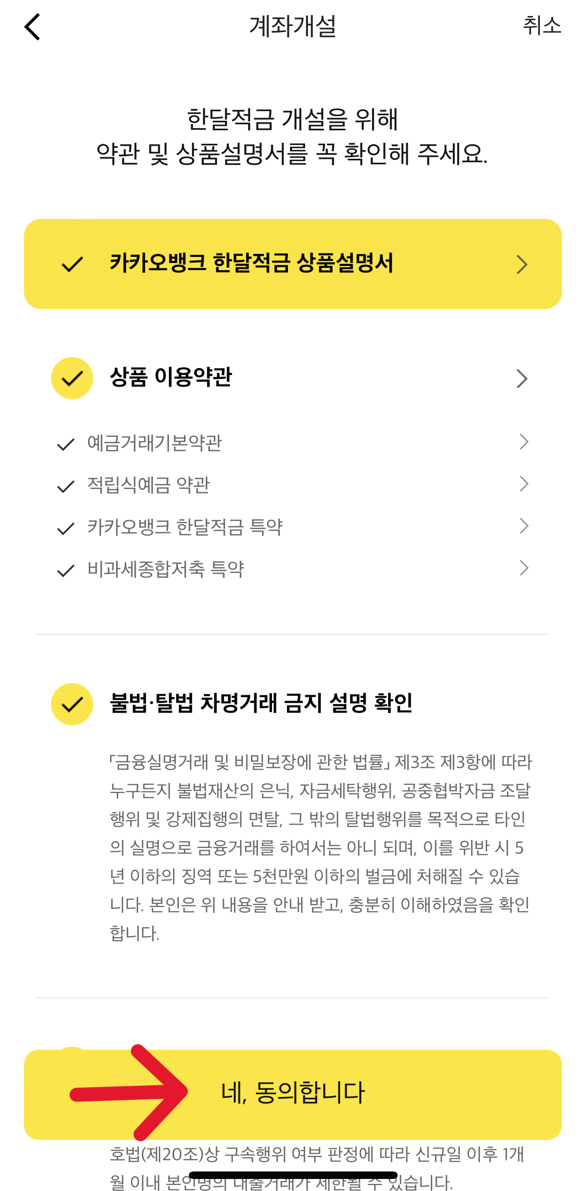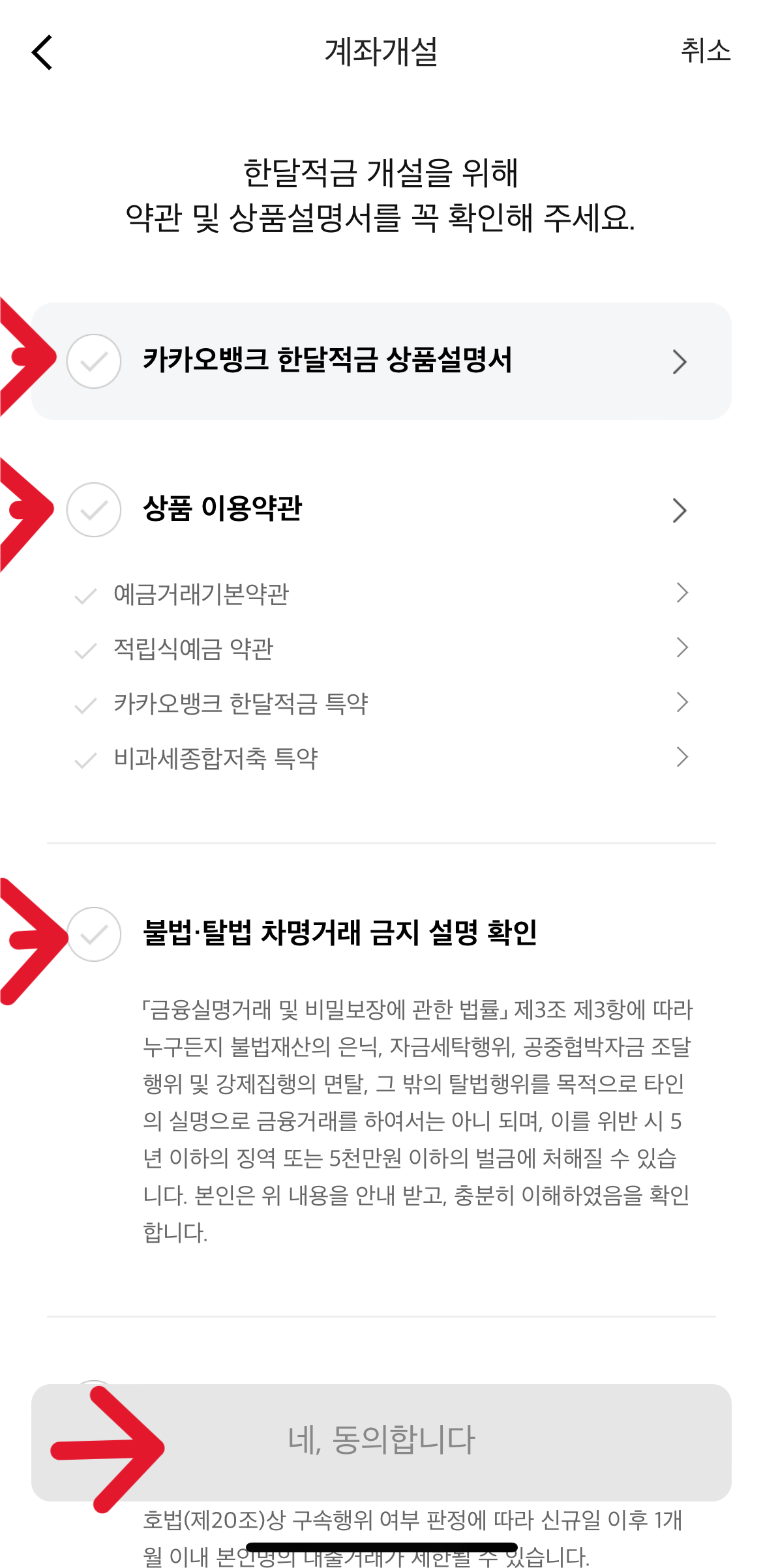 (4) 약관 동의 체크표시 누르기