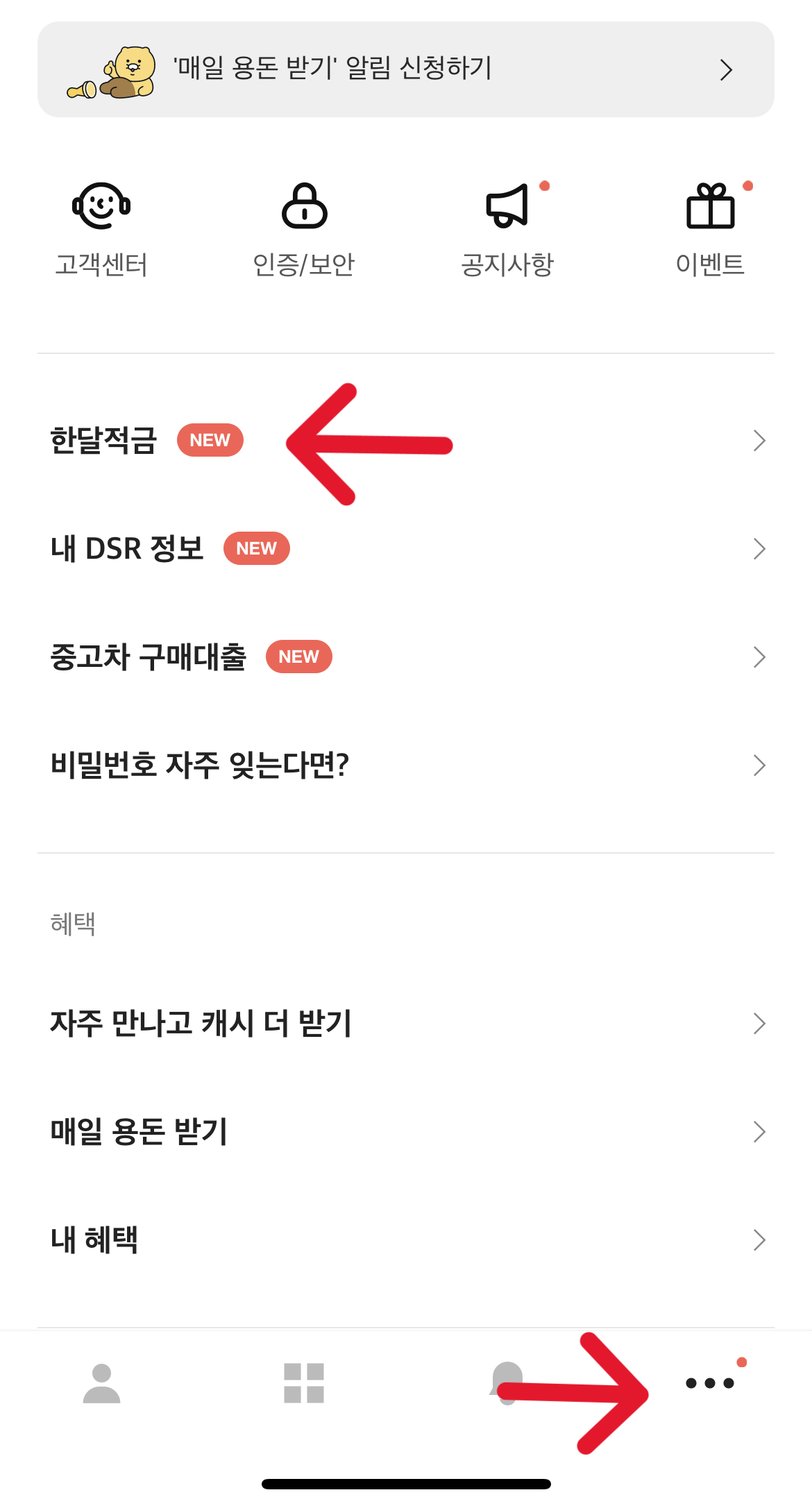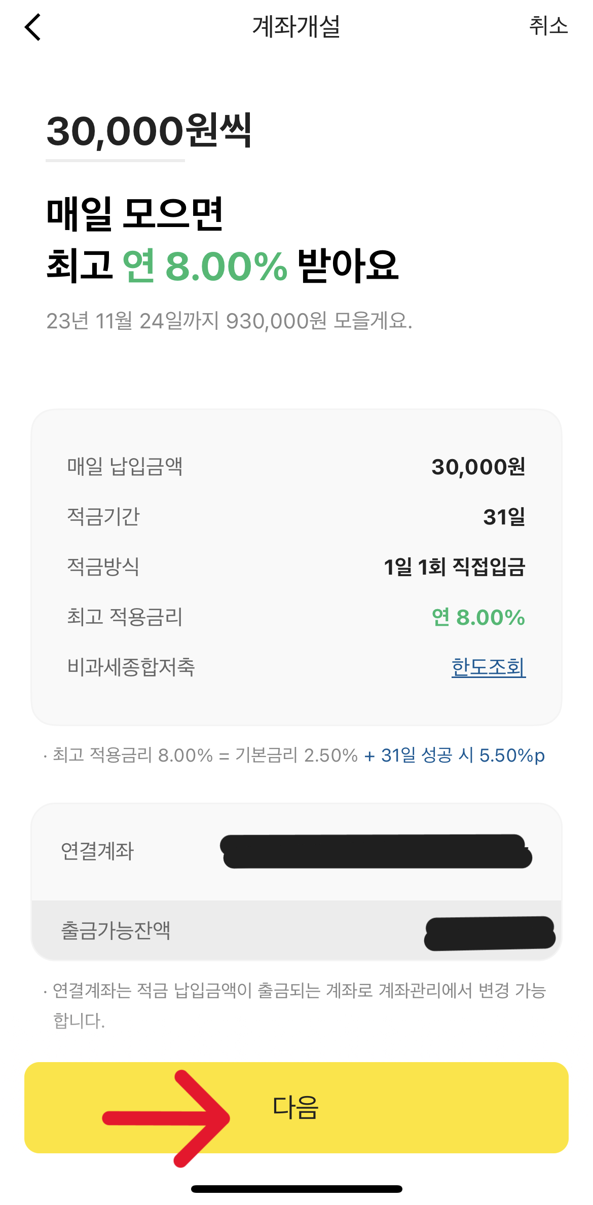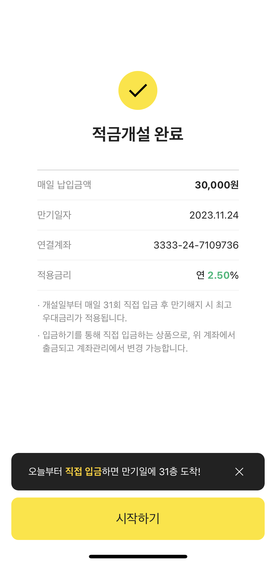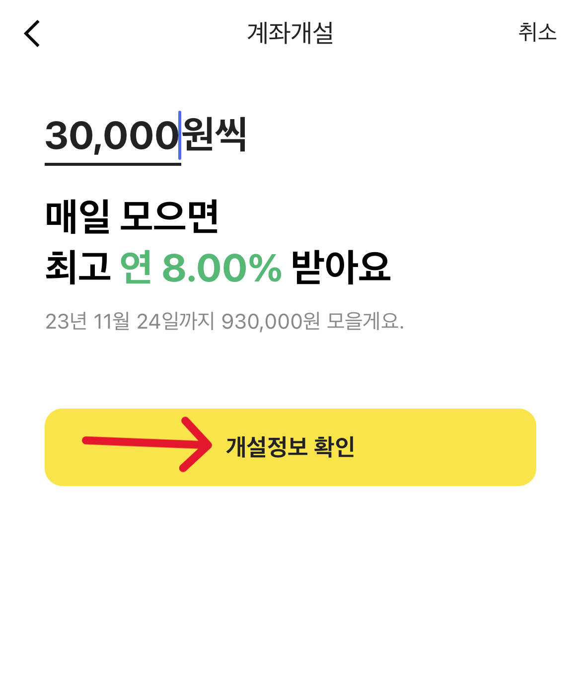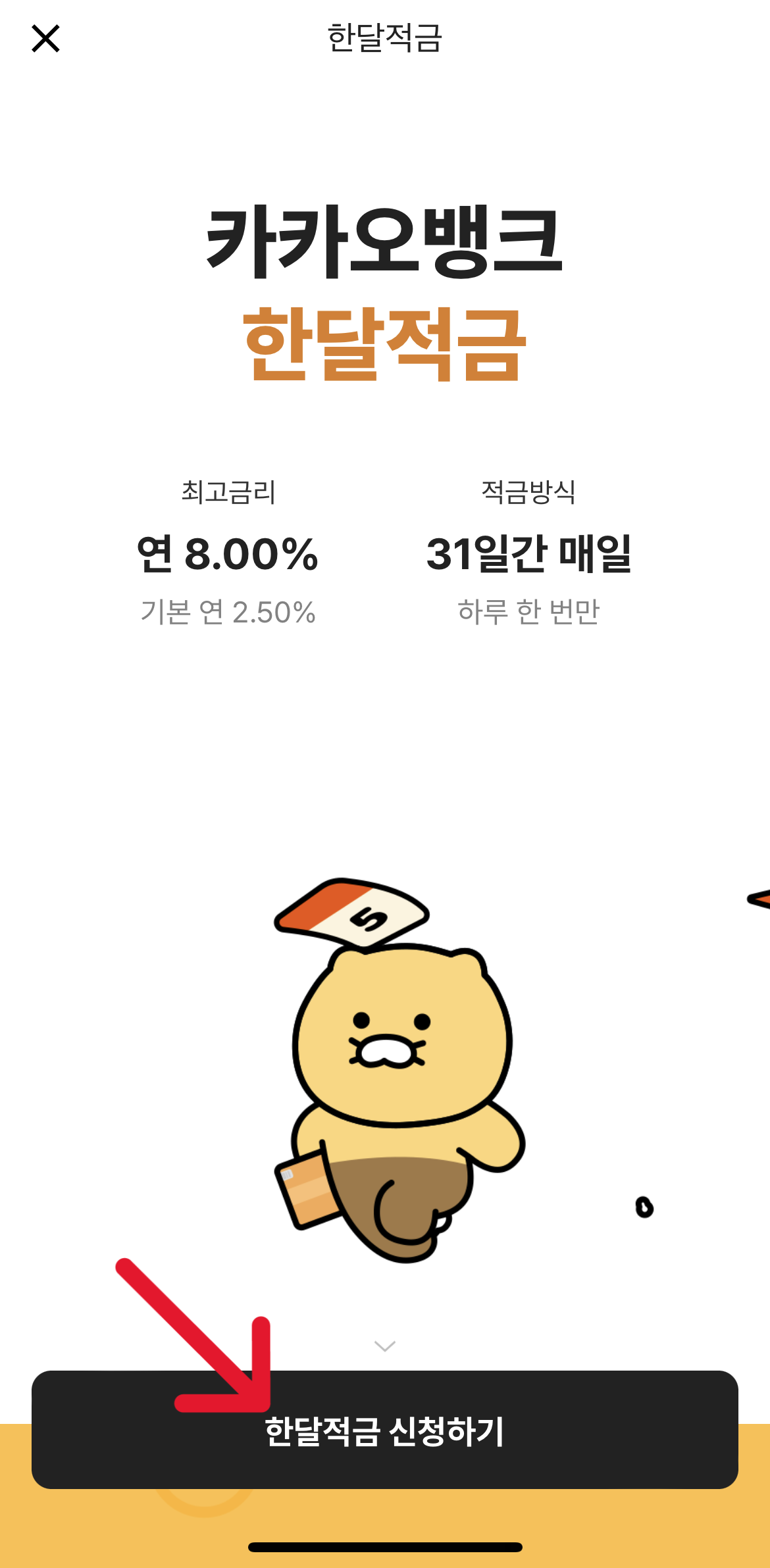 한달 적금에 바로 들어가면 위와 같은 화면이 보입니다.