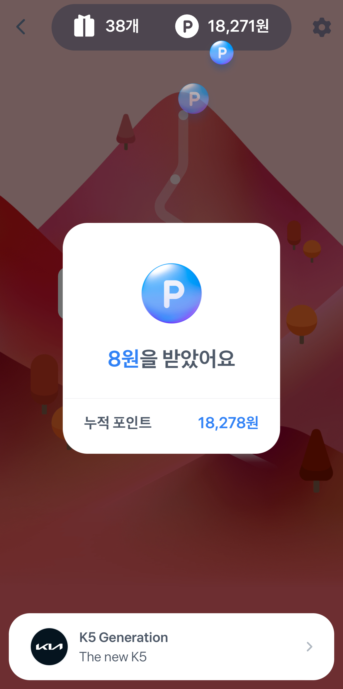 솔직히 비밀의 샘물 아이템이 제일 궁금하였고 포인트도 기대했습니다. 하지만 결과는 겨우 8원을 주어서 솔직히 조금 실망했습니다. 그리고 비밀의 샘물 아이템 역시 하루가 지나니 바로 사라져서 허무했습니다. 꾸준히 샘물이 늘어나는 시스템이었다면 행복하게 만보기 했을 텐데 아쉽습니다.