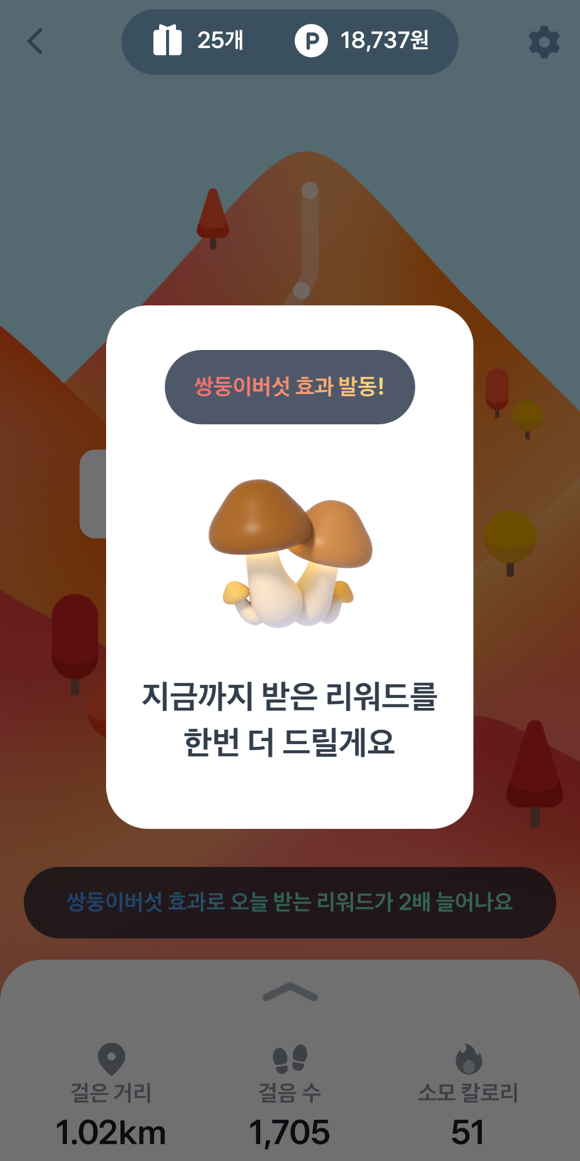 (1) 효과 : 17개를 모아 사용하기를 누르면 하루 동안 받는 리워드가 2배 늘어납니다.