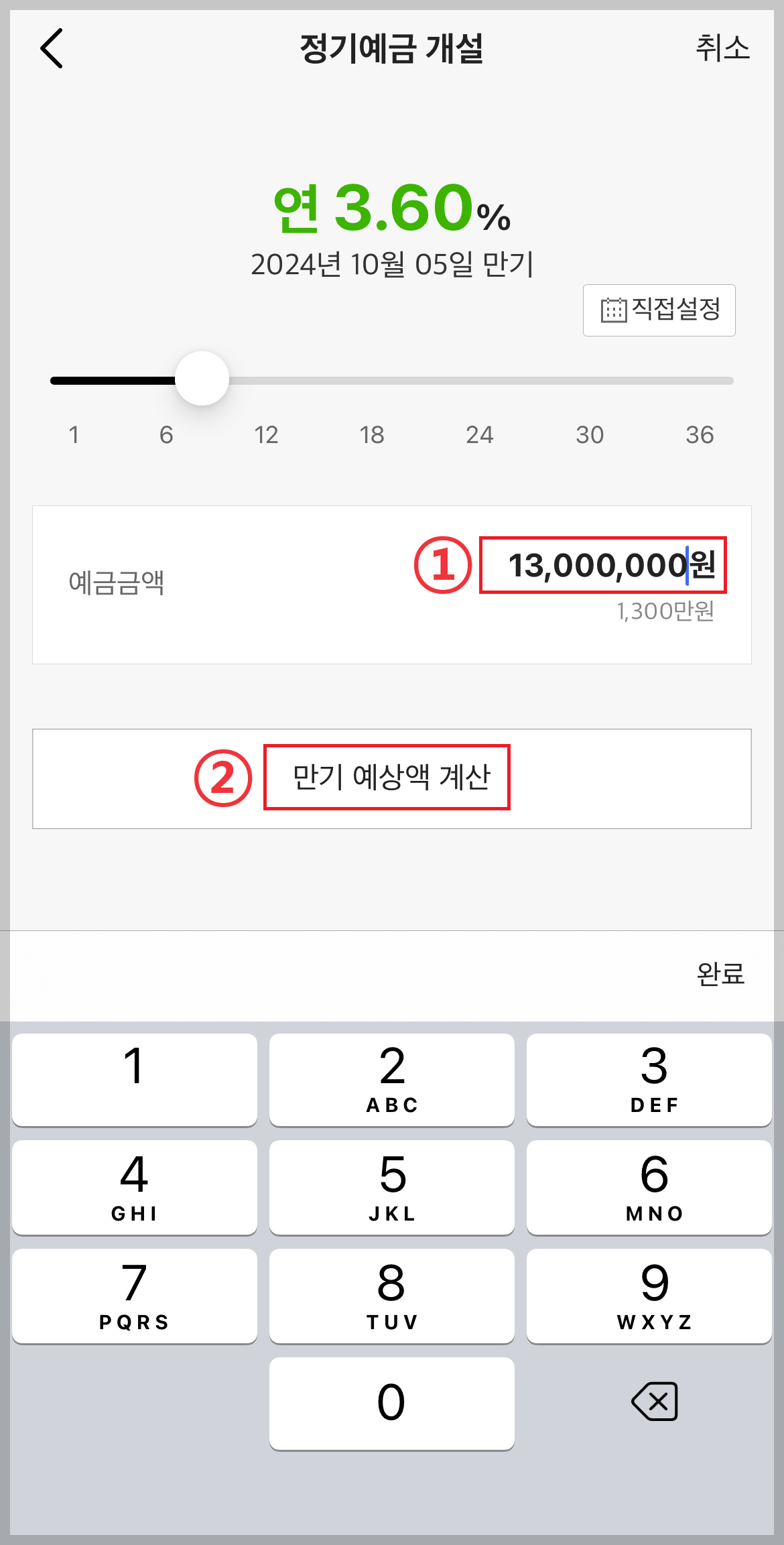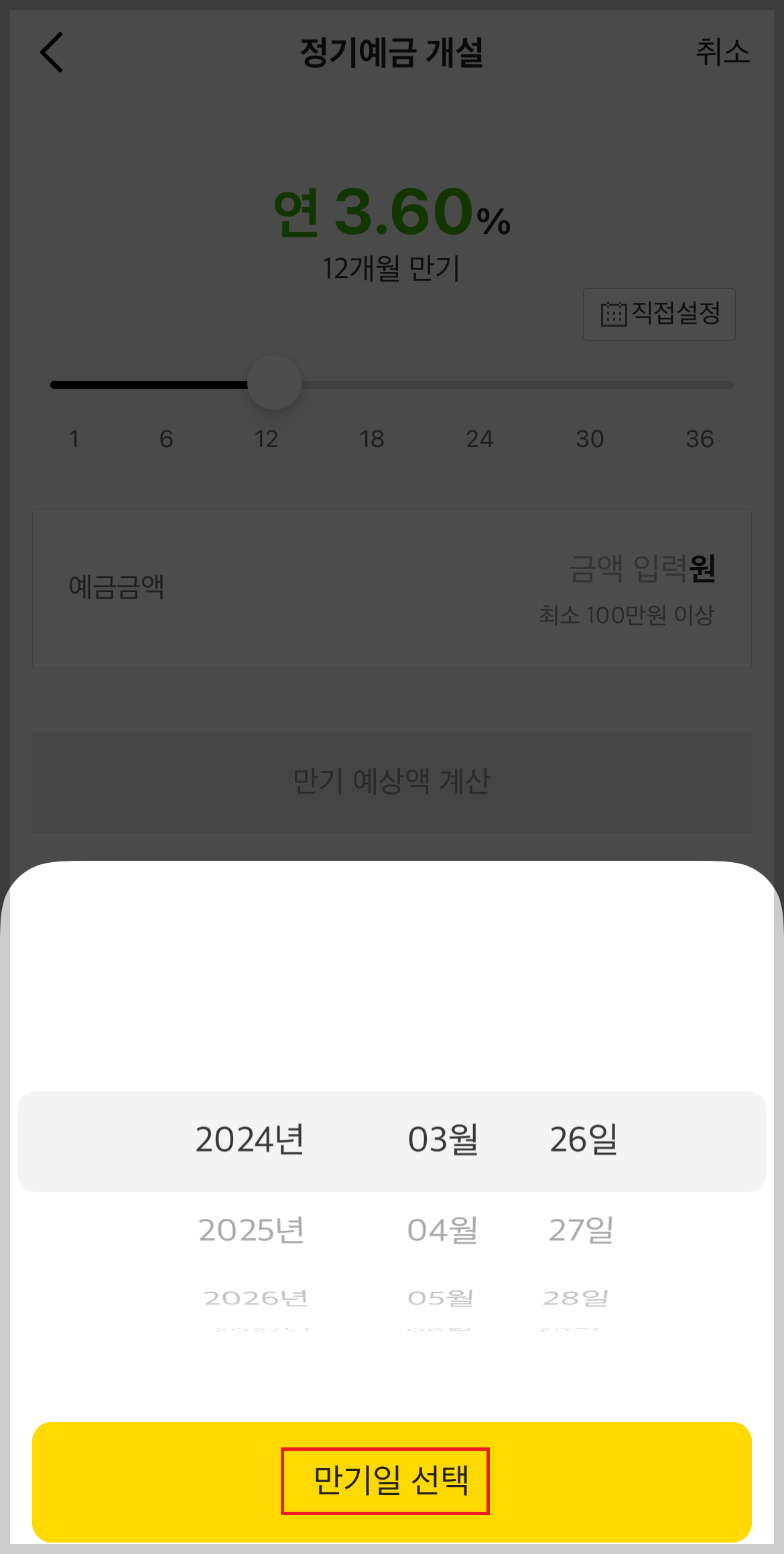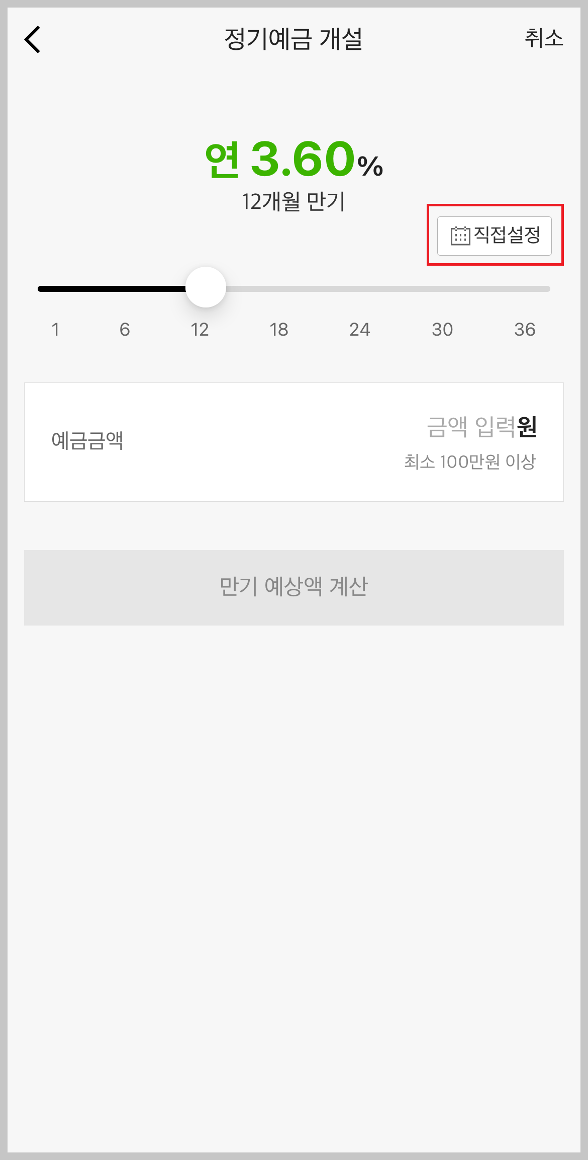 (5) 만기 날짜 설정을 위해 직접설정을 눌러주세요.