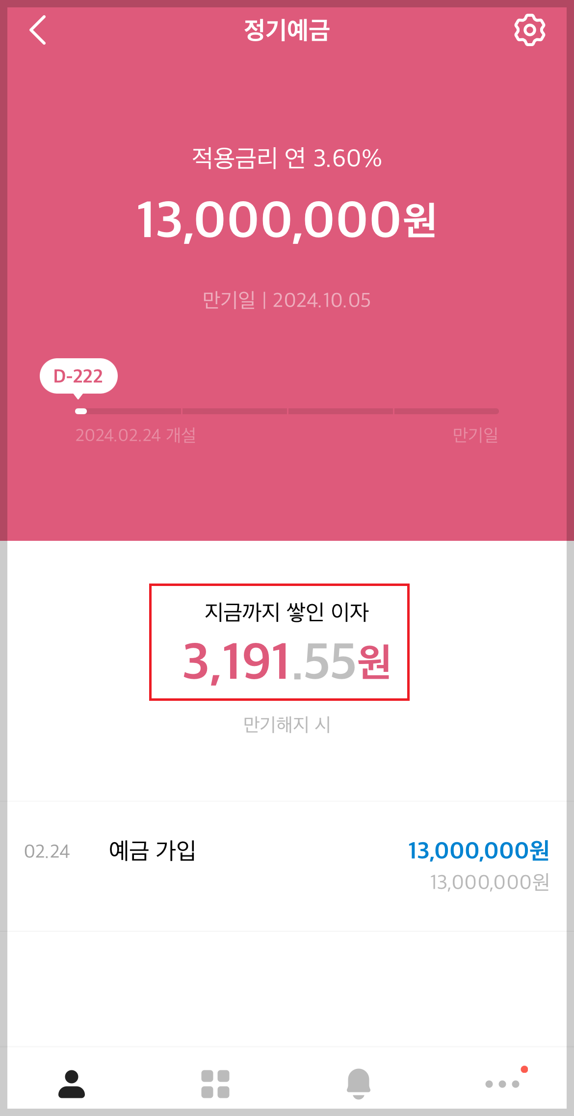- 아래 사진처럼 실시간으로 이자 쌓이는 걸 볼 수 있어요.