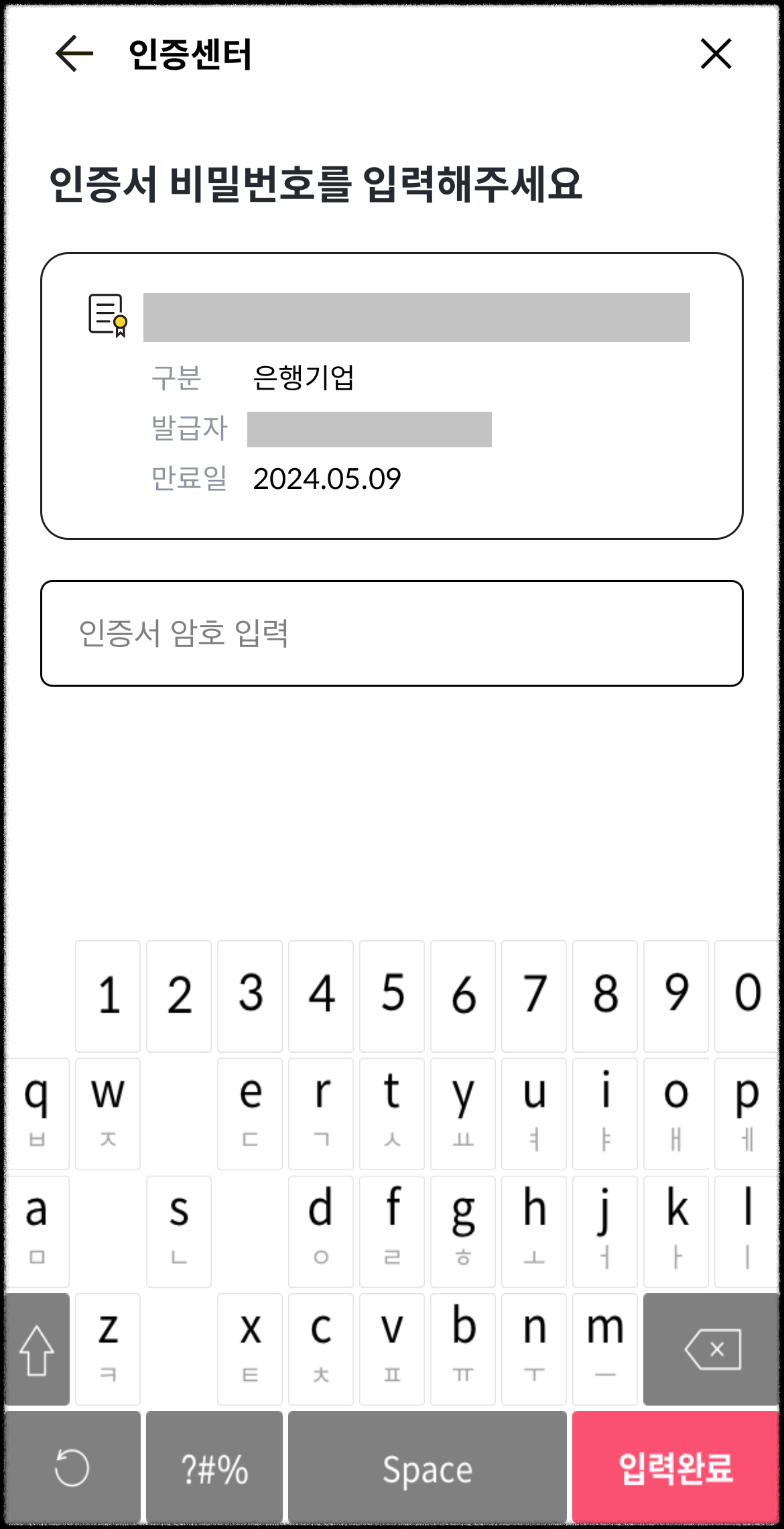 20. 인증서 비밀번호를 입력합니다.