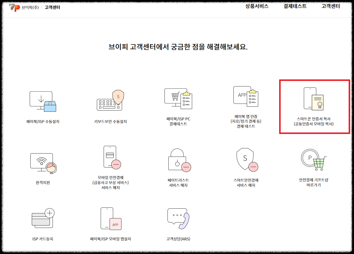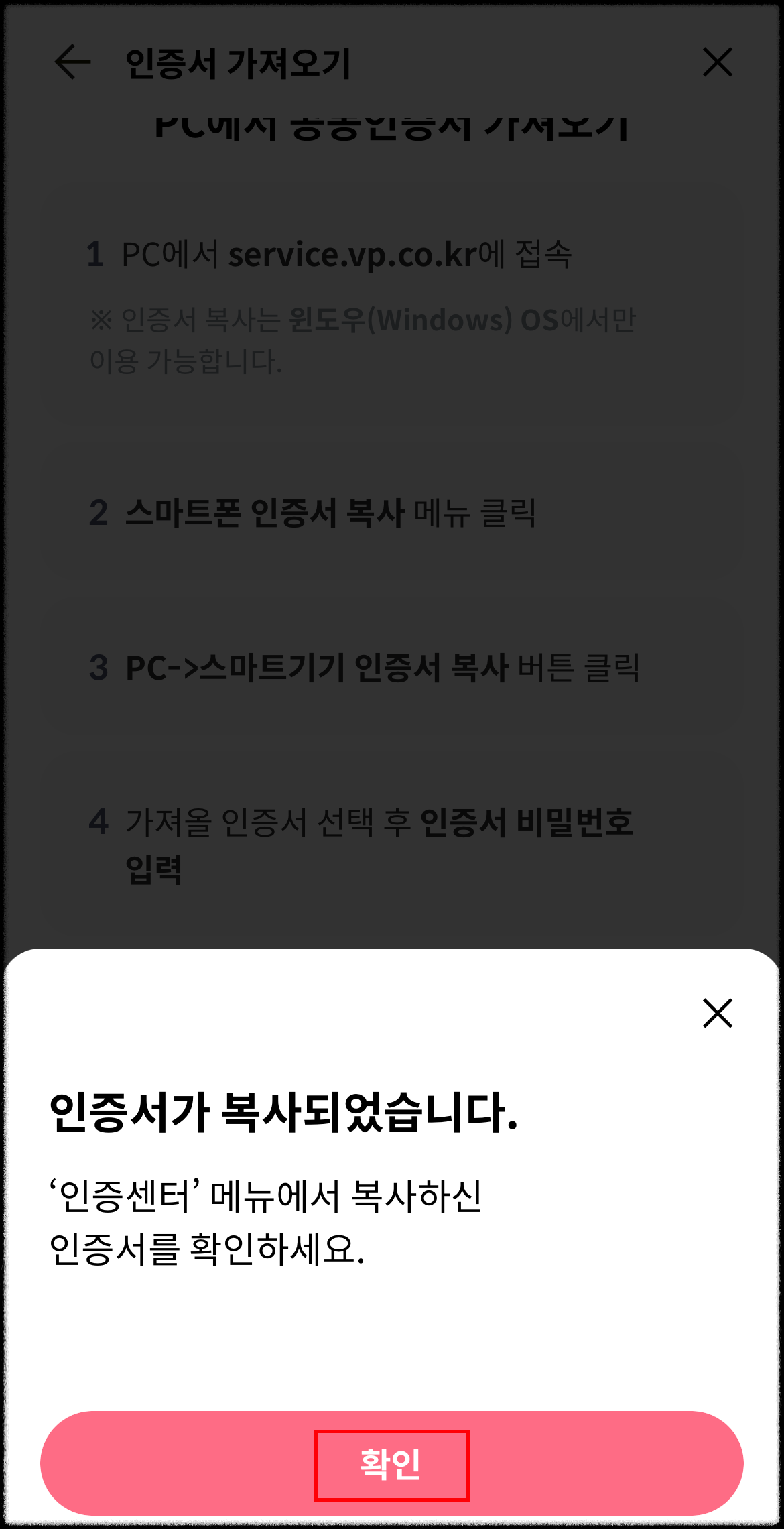 14. PC → 스마트기기 인증서 복사 부분을 클릭합니다.