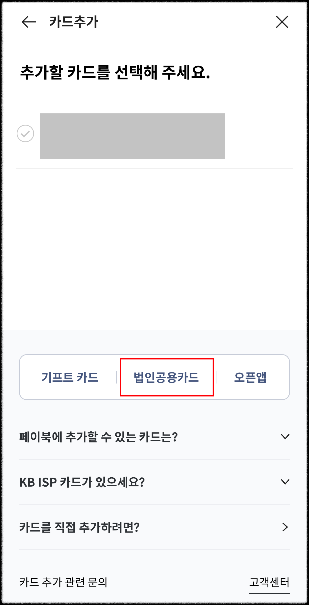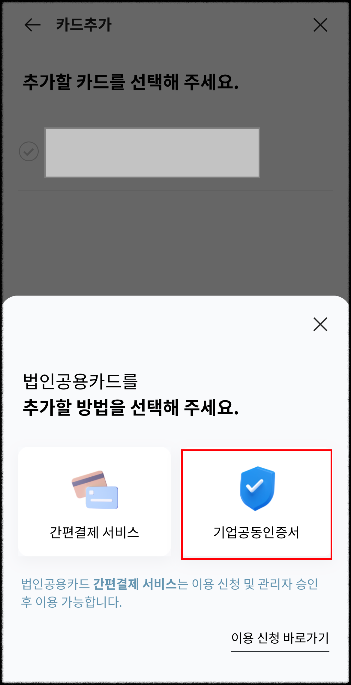 5. 법인공용카드를 누릅니다.