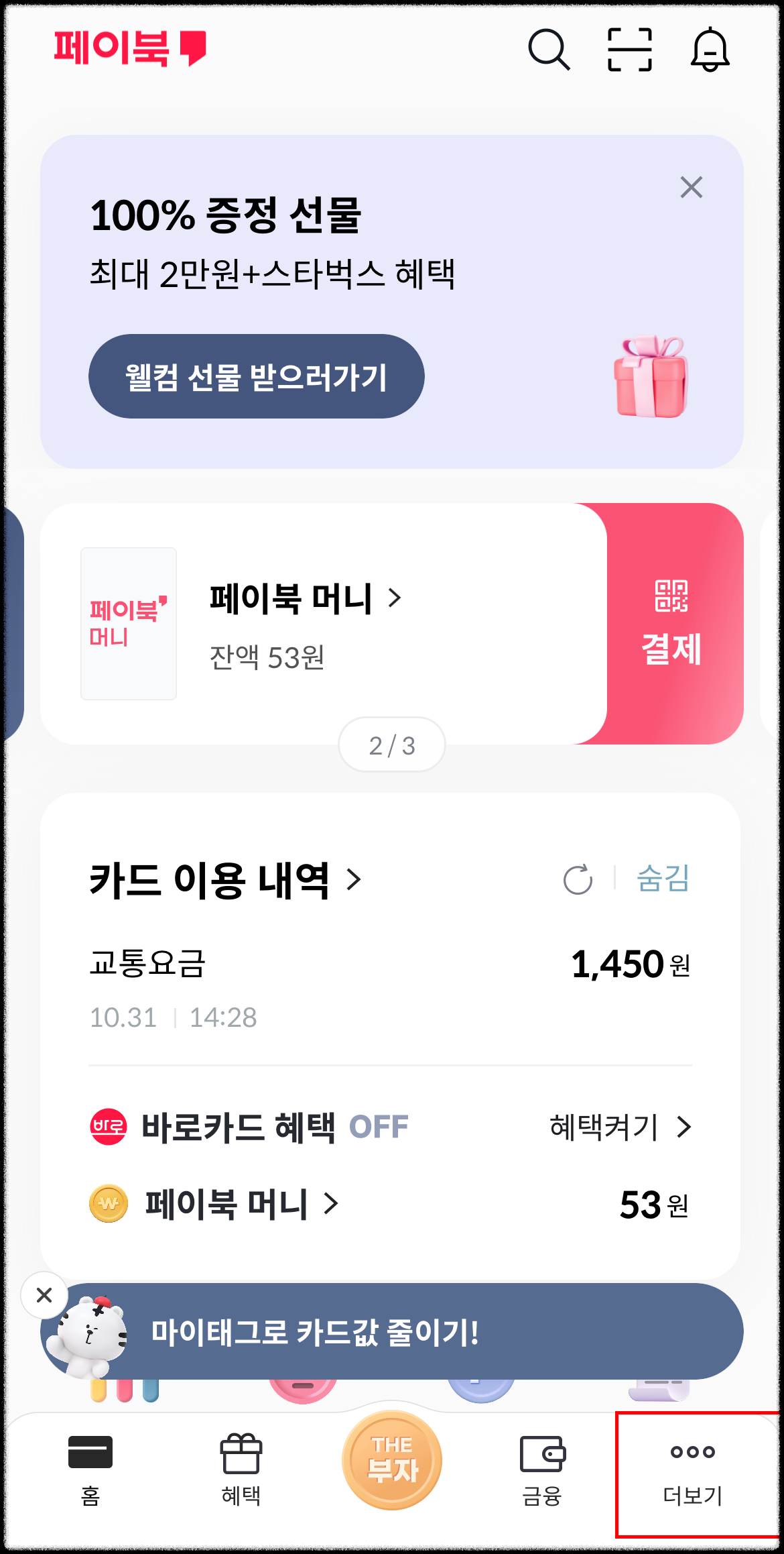 1. 스마트폰에서 페이북 어플을 실행합니다.