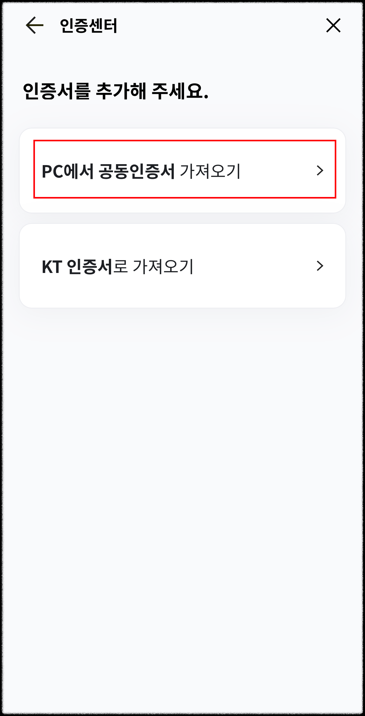 11. PC에서 공동인증서 가져오기를 누릅니다.
