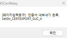 18. 인증서 복사가 되어 사진과 같은 화면이 뜨면 확인을 눌러줍니다.