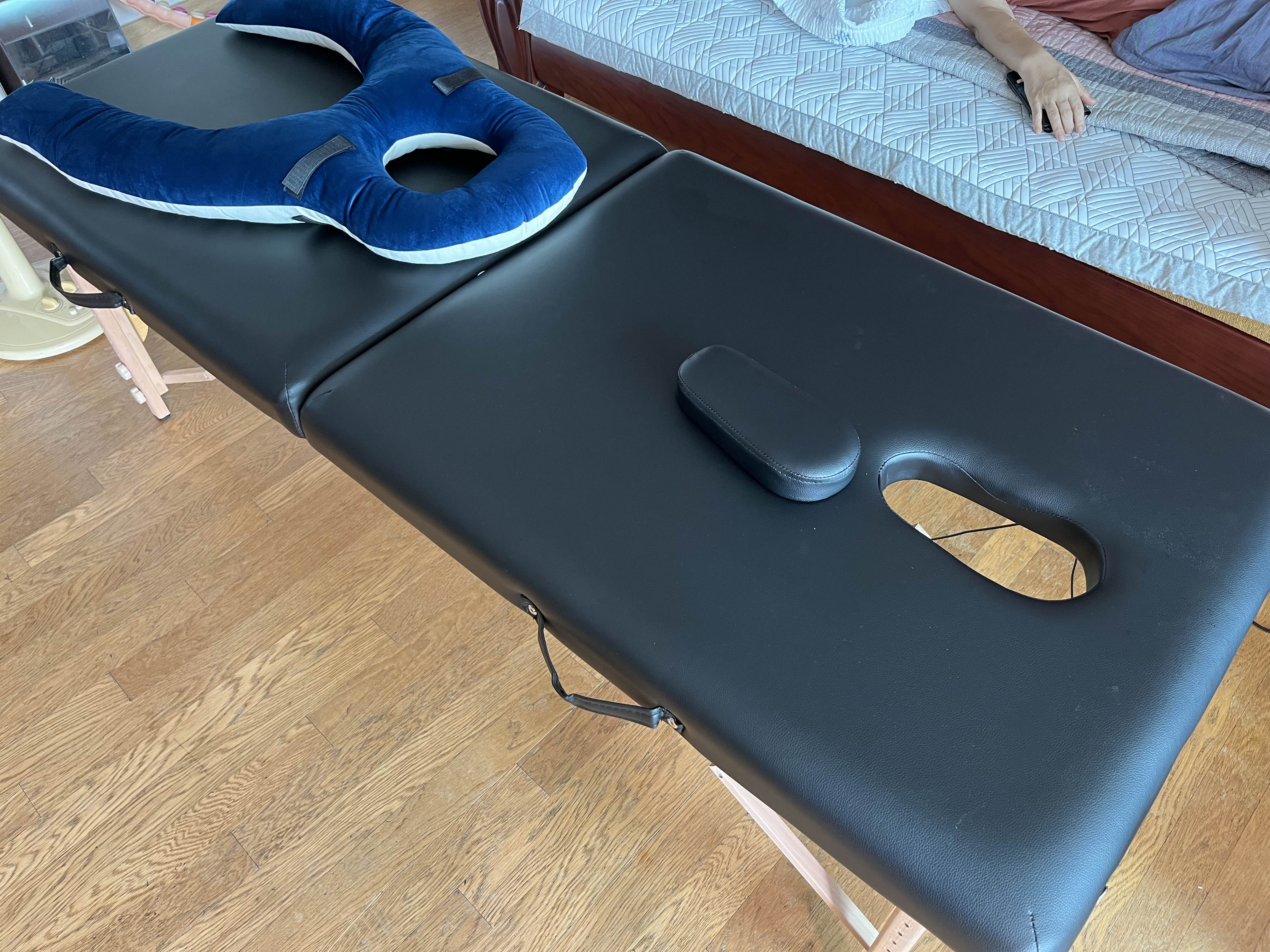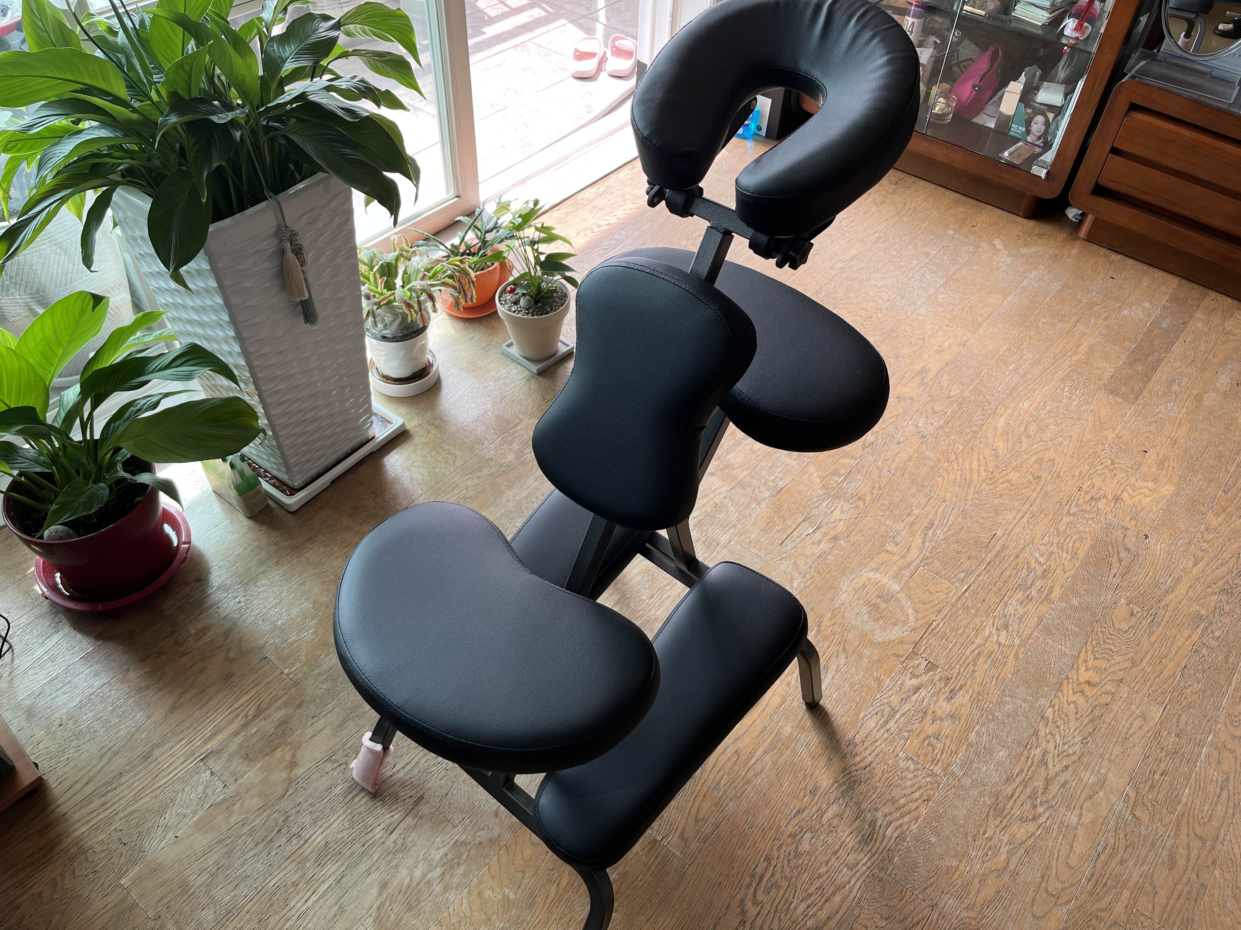 이 의자는 타투의자라고 합니다. 엄마가 엎드려 있는 게 너무 힘들다고 하셔서 추가로 구입했습니다. 앉아서 고개를 숙일 수 있는 구조의 의자입니다. 그런데 막상 구매하니까 이것도 불편하시다고 많이 활용하진 못했습니다. 모두 인터넷에서 구매했는데 이거 구매에 지출한 비용도 만만치 않습니다.