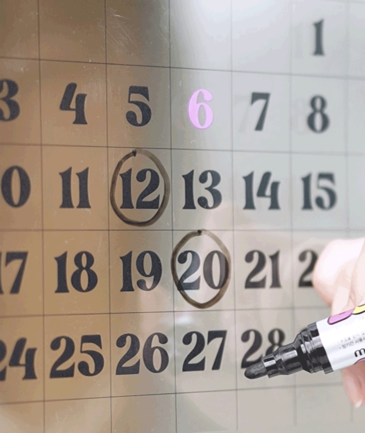 그리고 사진에 보이는 것과 같이 보드마카를 통해 기념일이나 일정을 표시 할 수 있다는 장점이 있습니다. 개인적으로 이 부분이 가장 마음에 들어요.