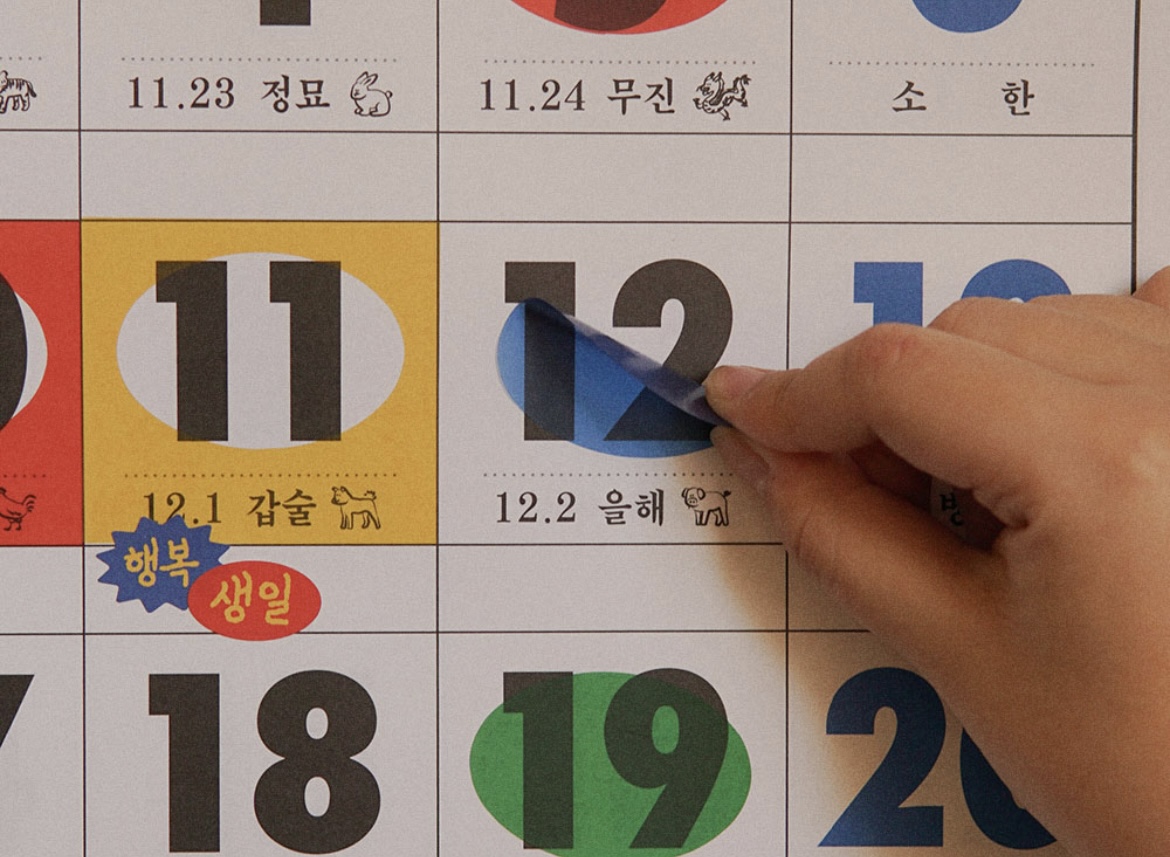 레트로 감성의 오리지널 달력을 원하신다면 추천드릴 아무개씨 달력입니다. 레트로 감성만 있다면 아쉬웠을 텐데 꾸밀 수 있는 스티커를 같이 준다는 점이 마음에 들어요! 그리고 음력날짜도 표시가 되어있어서 부모님 생신 챙길 때 편리할 거 같아요.