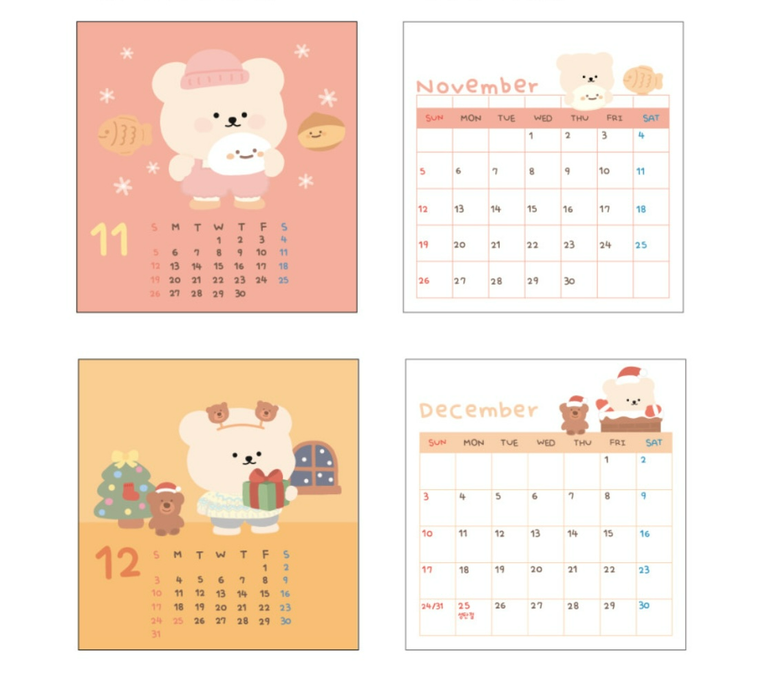 밤토리 달력은 귀여운 게 가장 큰 장점입니다. 귀여운 캐릭터를 좋아하신다면 추천드릴 달력입니다. 또 흔하지 않은 캐릭터라 유니크한 것을 좋아하신다면 더 만족하실 달력입니다.