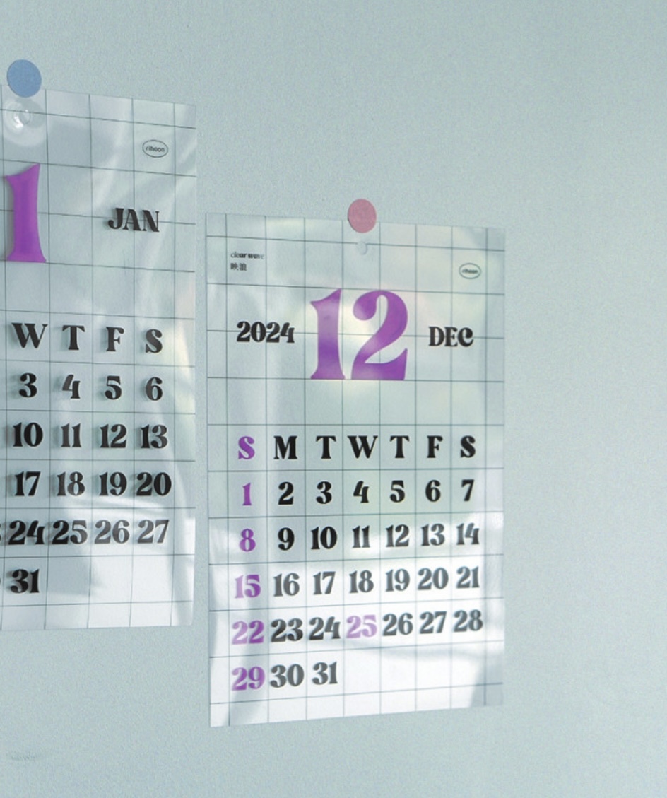 먼저 소개드릴 달력은 리훈 달력입니다. 리훈 달력은 유리, 거울, 냉장고등에 부착할 수 있는 달력이에요. 뻔하지 않은 달력이라 좋아요. 인테리어 소품으로도 손색없죠!